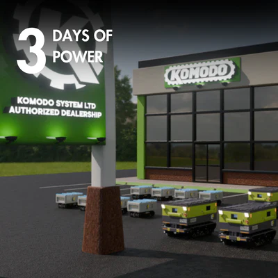 No fuel logistics, no special wiring—just drop it, connect, and power up in minutes. Whether it’s a construction site, emergency response, or off-grid location, Komodo ensures immediate, hassle-free energy wherever you need it.